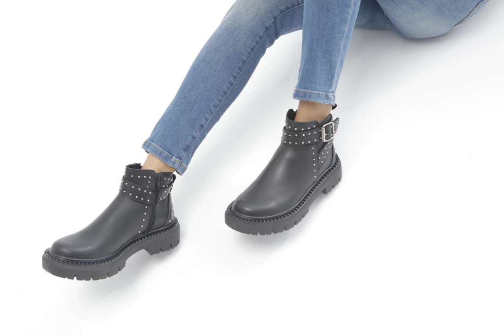 BOTA BADDA es una opción ideal para quienes buscan estilo y resistencia en un calzado de caña corta. Confeccionada en cuero vacuno de calidad, tiene detalles en tachas que le dan un toque moderno y llamativo.